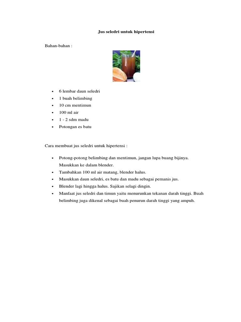 Resep Jus Sehat Solusi Perut Buncit Dan Hipertensi Oleh Rima Rahmawati Cookpad Meski kurang dianggap penting, namun manfaat daun seledri untuk kesehatan ternyata cukup banyak.banyaknya kandungan nutrisi dalam seledri.